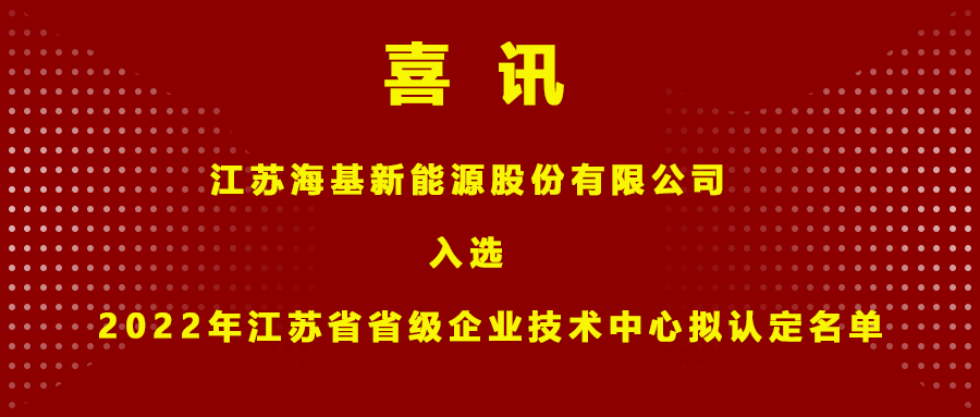 近日,江蘇省工業(yè)和信息化廳發(fā)布了“2022年江蘇省省級(jí)企業(yè)技術(shù)中心擬認(rèn)定名單公示”的通知。經(jīng)過(guò)嚴(yán)格的綜合考核,江蘇海基新能源股份有限公司成功入選。