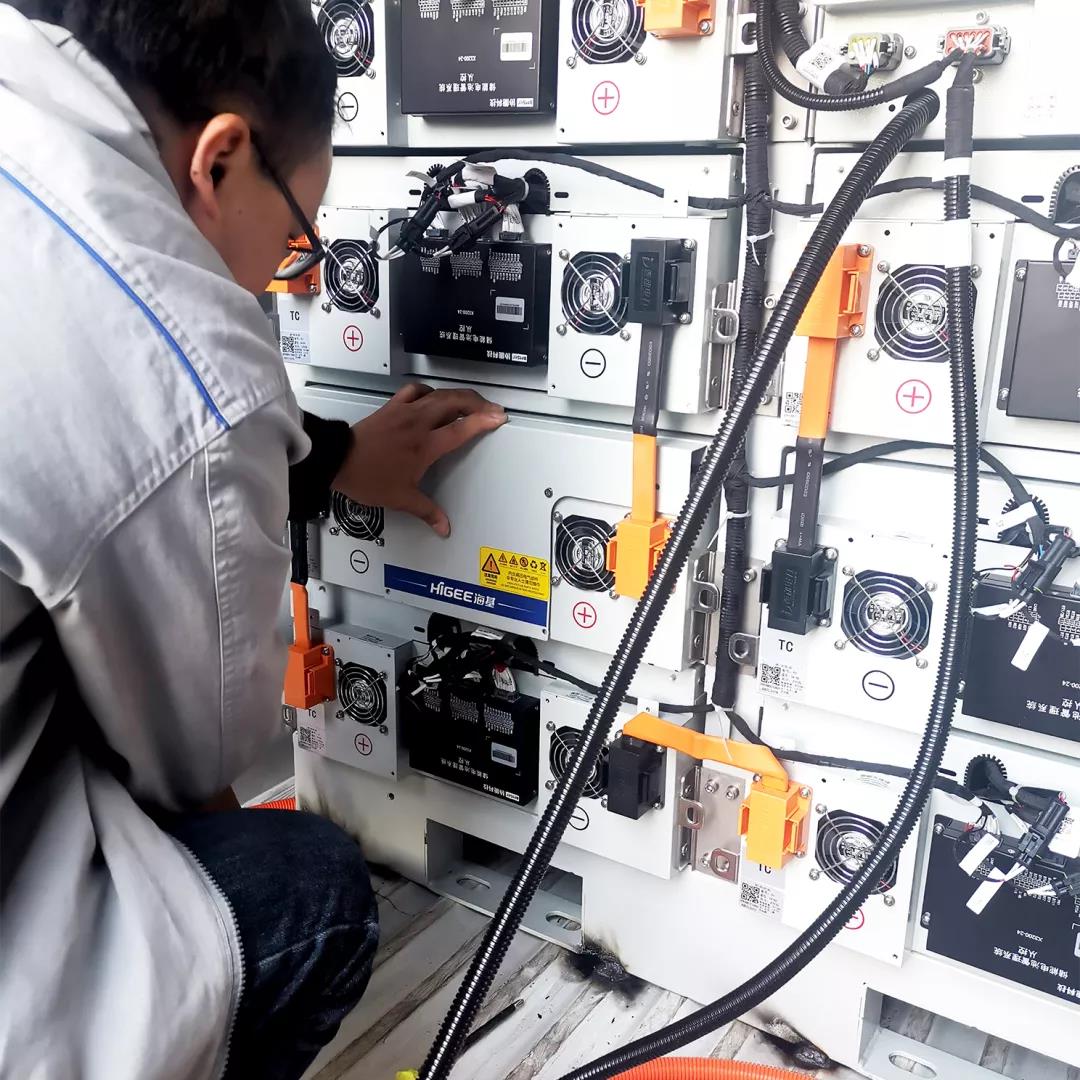 最近?;履茉磸S區(qū)PACK車間門口停放的一輛白色依維柯頗引人注意,而現(xiàn)場(chǎng)PACK安裝人員正忙碌的調(diào)試系統(tǒng)和安裝電池,原來這是一輛移動(dòng)儲(chǔ)能車!